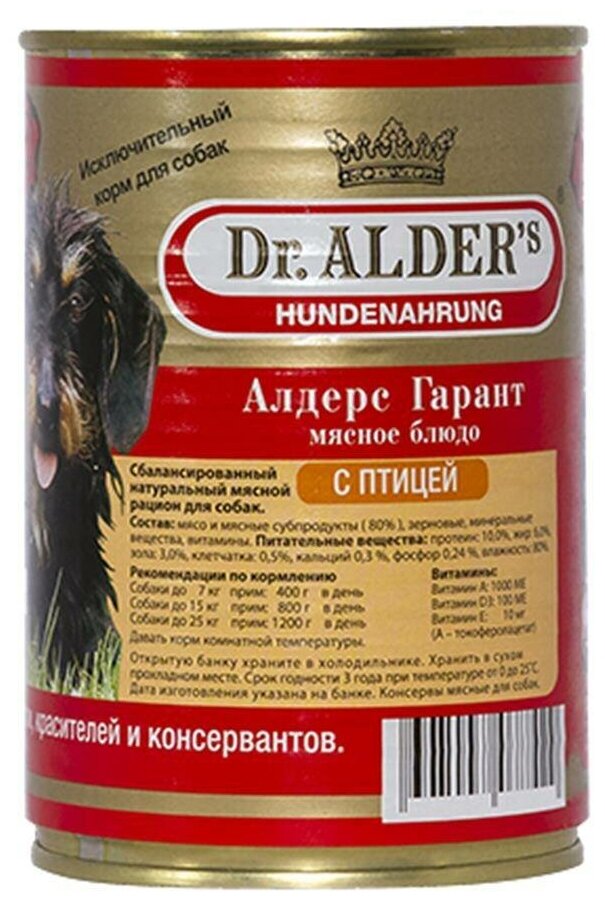Корм для собак DR. ALDER`S Алдерс Гарант 80%рубленного мяса Птица конс. 410гр 1 шт