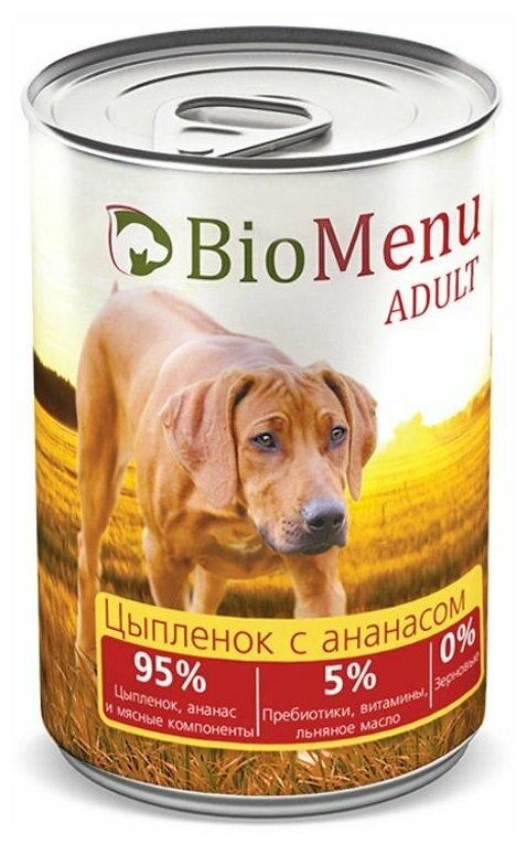 BioMenu ADULT Консервы для собак Цыпленок с Ананасами 95%-мясо 410г х 12 шт