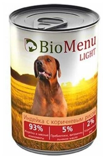 Корм для собак BioMenu LIGHT Консервы для собак Индейка с коричневым рисом 93%-мясо 410г (12шт)
