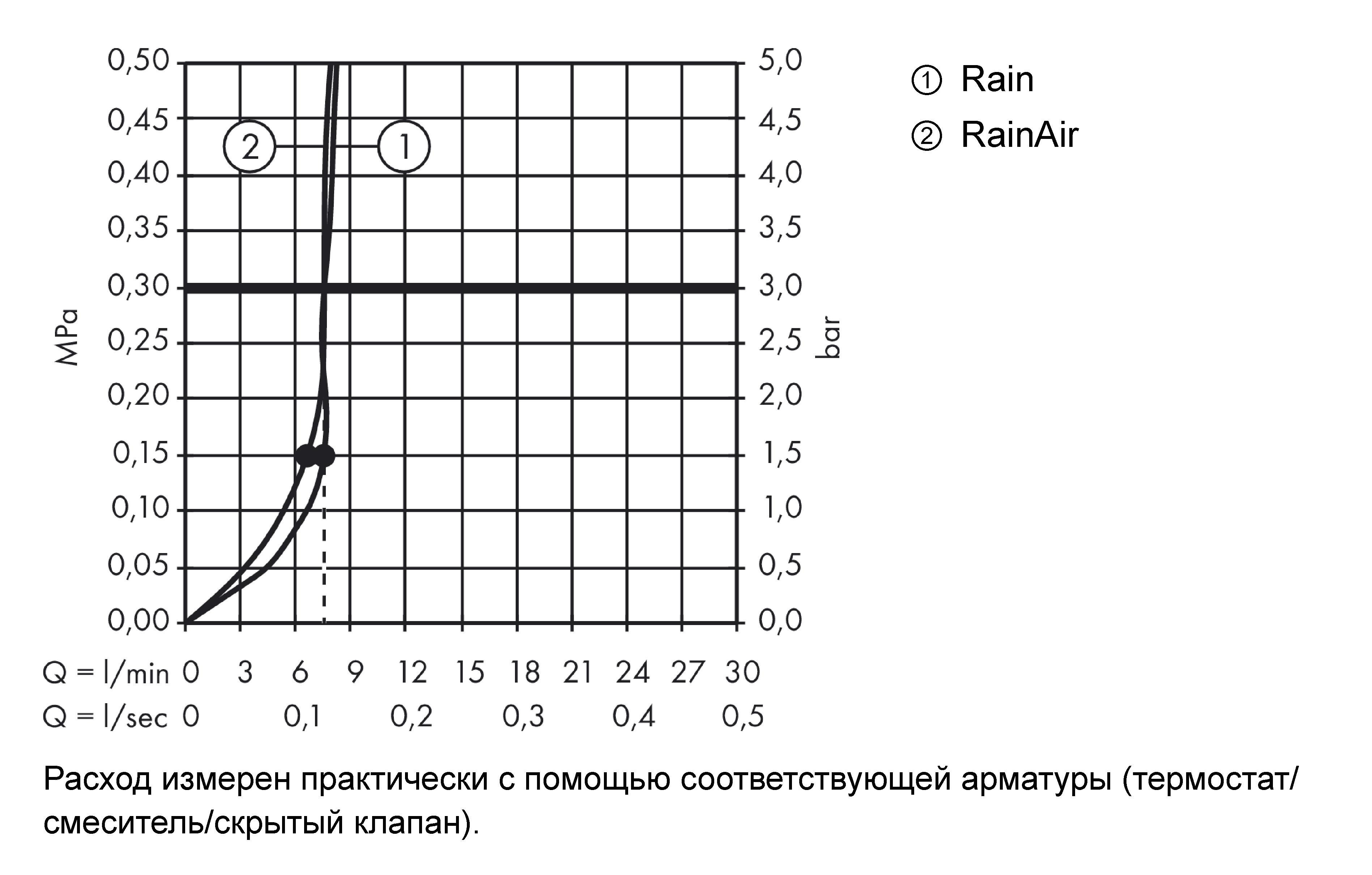 | Расход воды верхний душ | 8 л/мин (максимальный, при давлении 3 бар) |