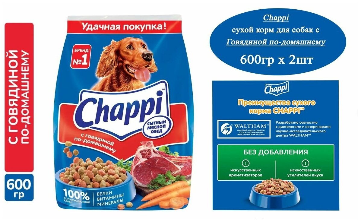 Chappi Сухой корм Chappi для собак, с говядиной по-домашнему, 600 г