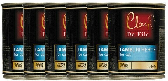 Корм для кошек CLAN De File консервы для кошек 340 г Ягненок х 6 шт.