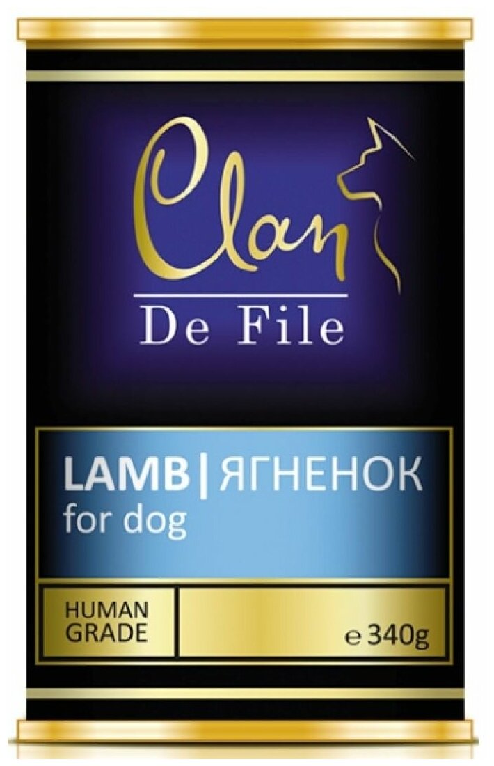 Корм полнорационный консервированный CLAN De File для собак Ягненок, 340гр, 12 шт.
