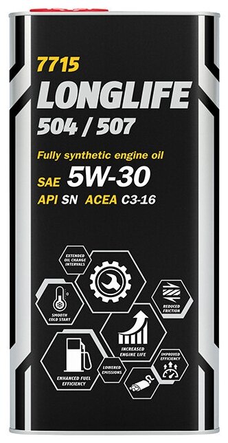 Моторные масла MANNOL MN7715-5 7715-5 MANNOL LONGLIFE 504507 Синтетическое моторное масло 5W-30 SNSMCF 5л 1шт