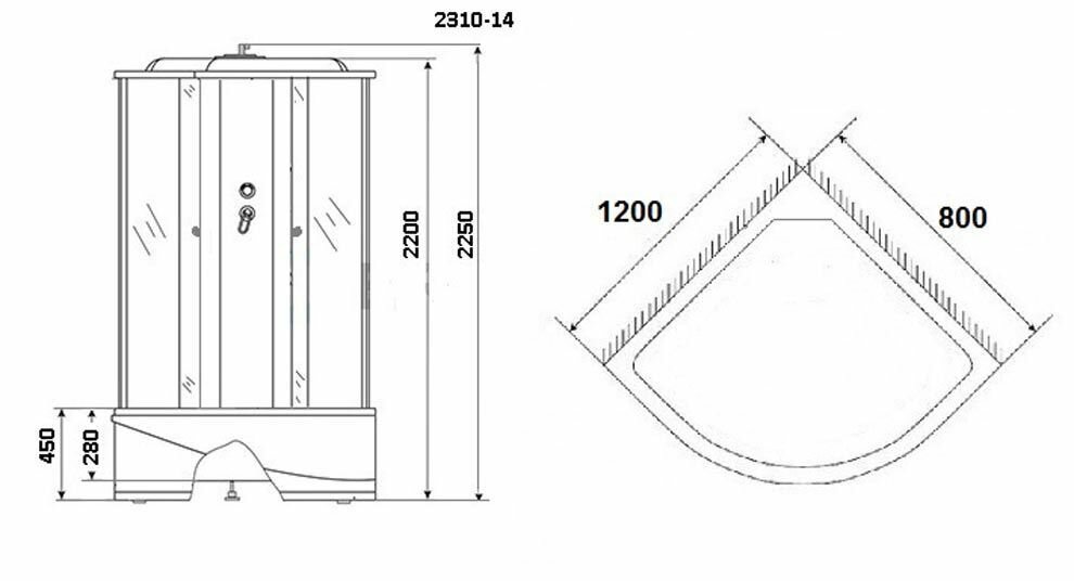 Душевая кабина NG- 2310-14R (1200х800х2150) высокий поддон(45см) стекло матовое