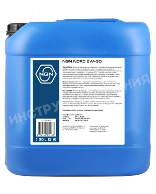 Лучшие цены. NGN NORD 5W30 полностью синтетическое моторное масло для бензиновых, дизельных и LPG двигателей легковых автомобилей и легкого коммерческого транспорта. NGN NORD 5W30 обеспечивает легкий запуск двигателя и стабильную масляную пленку при экстремально низких температурах, температура застывания -54 C. NGN NORD 5W30 содержит уникальный пакет присадок, обеспечивающий высокую защиту от износа и окисления, а так же исключительную чистоту деталей двигателя. Магазины в вашем городе.