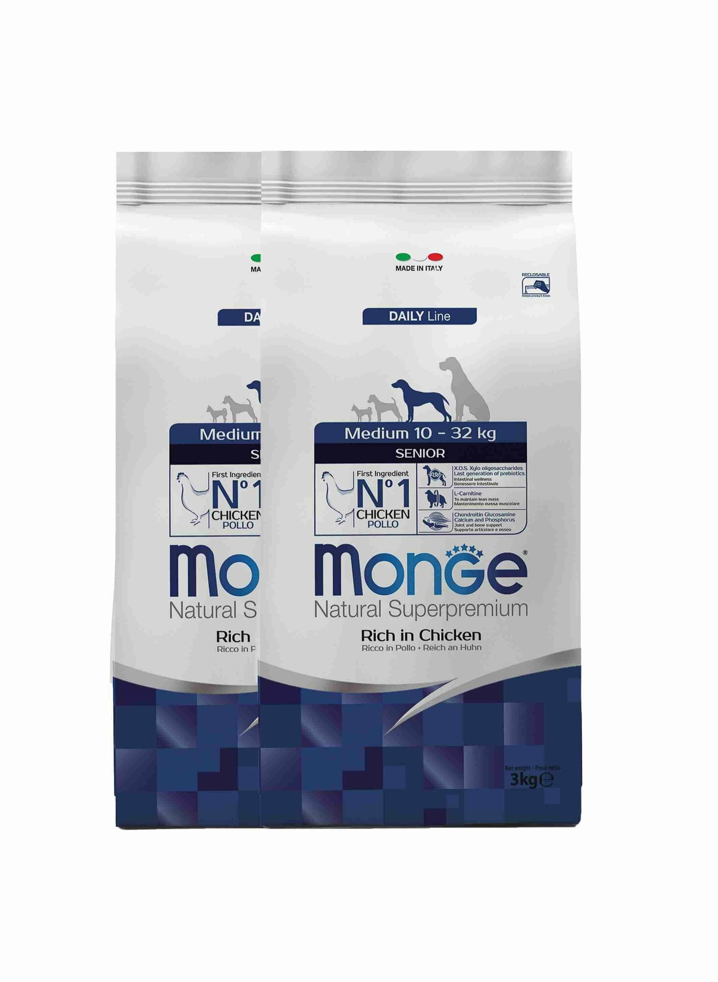 Корм для собак Сухой корм для пожилых собак Monge Daily Line, курица 2 шт. х 3 кг (для средних пород)