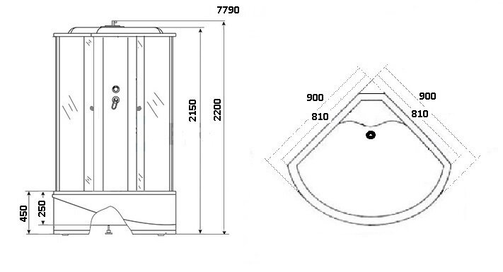 | Функции | гидромассаж вертикальный / верхний душ (тропический) / подсветка / вентиляция |