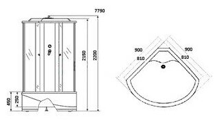 | Функции | гидромассаж вертикальный / верхний душ (тропический) / подсветка / вентиляция |