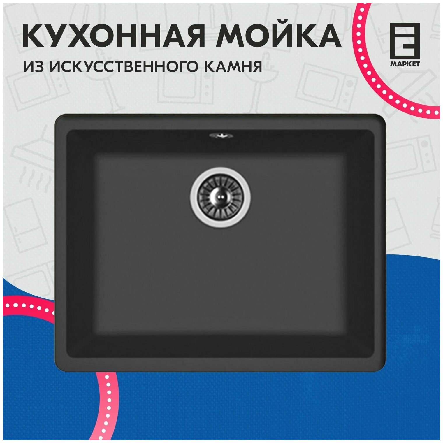 Мойка для кухни подстольная каменная Florentina ВЕГА-500, цвет антрацит, прямоугольная, 540х420х217 мм