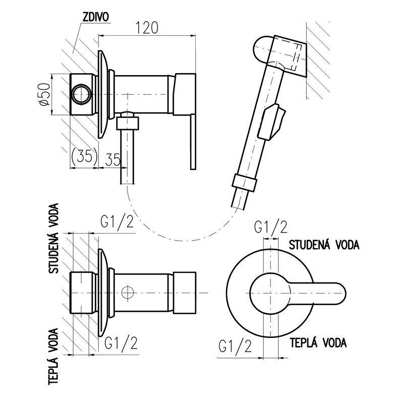 ZA047/1 ZAMBEZI - смеситель для биде с душем (металл), скрытый монтаж RAV Slezak