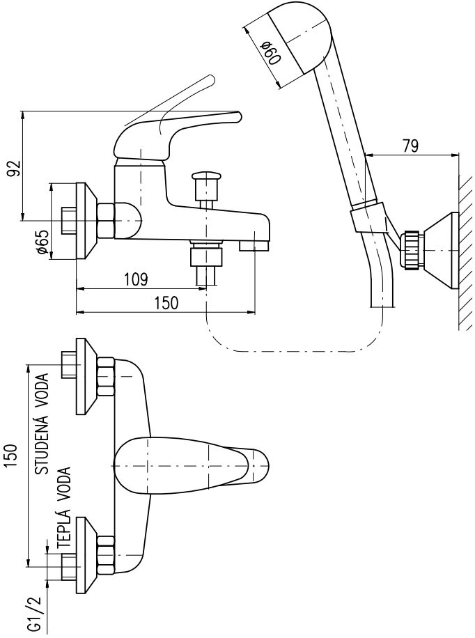 SA054.5/1 SAZAVA - смеситель для ванны, душ RAV Slezak