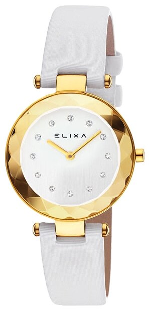 Лучшие цены. Женские часы. Коллекция Elixa. Элегантные женские часы - отличный аксессуар, который дополнит ваш повседневный образ. Тип механизма: кварцевый. Калибр: Miyota. Корпус: сталь с IP покрытием. Циферблат: белый. Браслет: текстильный ремешок на кожаной основе. Камень-вставка: циферблат украшен кристаллами. Водозащита: 30WR. Стекло: минеральное. Габаритные размеры: D 28мм. Магазины в вашем городе.
