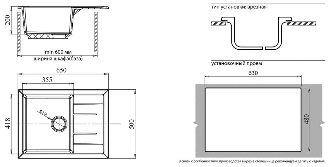 | Размеры врезного отверстия (накладная) | 750x480 мм |