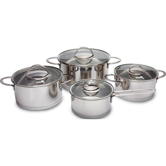Кастрюли Набор посуды AUGUSTIN WELZ AW-2200 из нержавеющей стали, 8 предметов: 1,8л, 2,3л, 3,1л, 5,7л