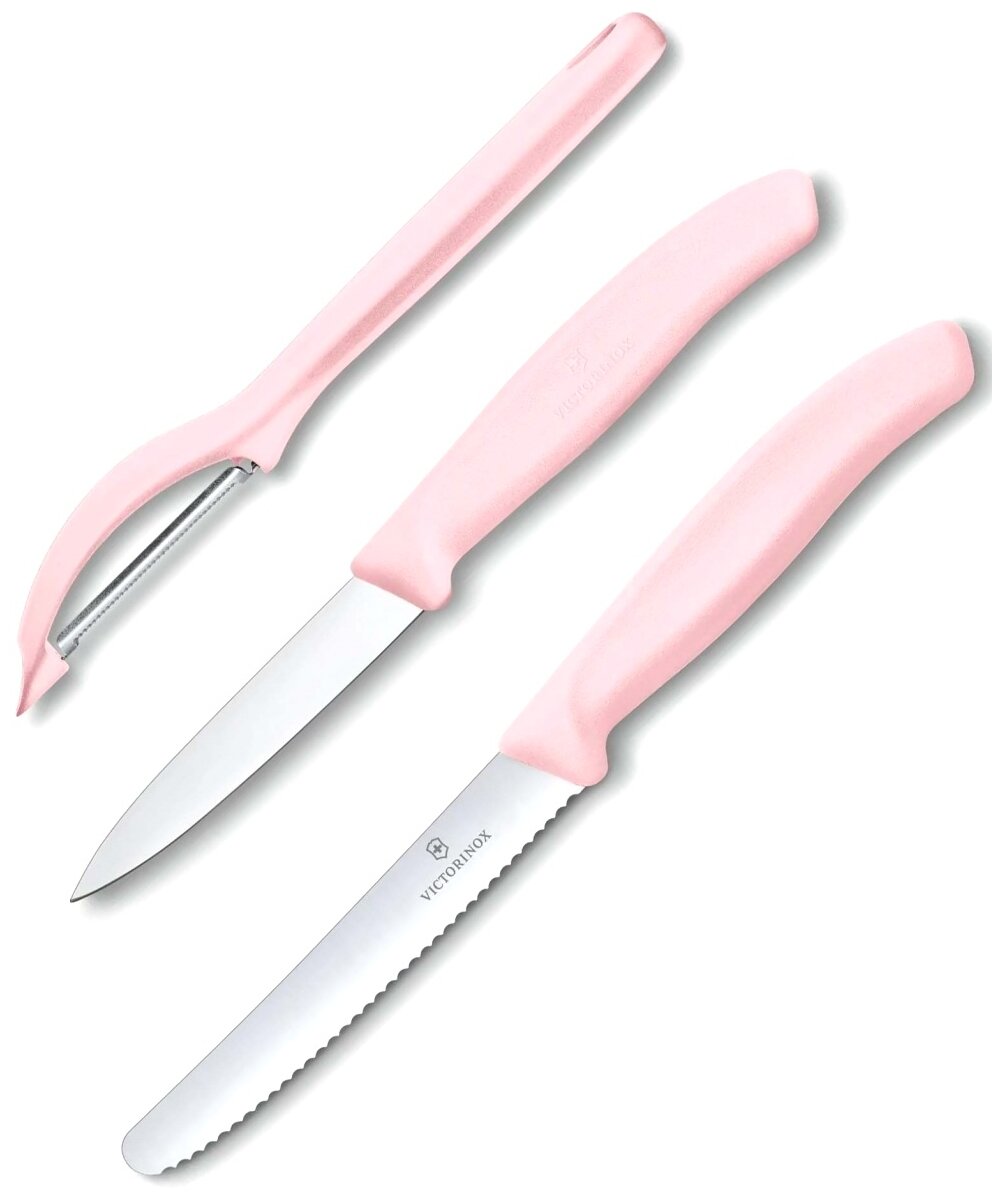Набор из 3-х кухонных ножей VICTORINOX Swiss Classic Trend Colors: нож 11 см, нож 8 см, овощечистка, в картонной коробке, розовый 6.7116.31L52