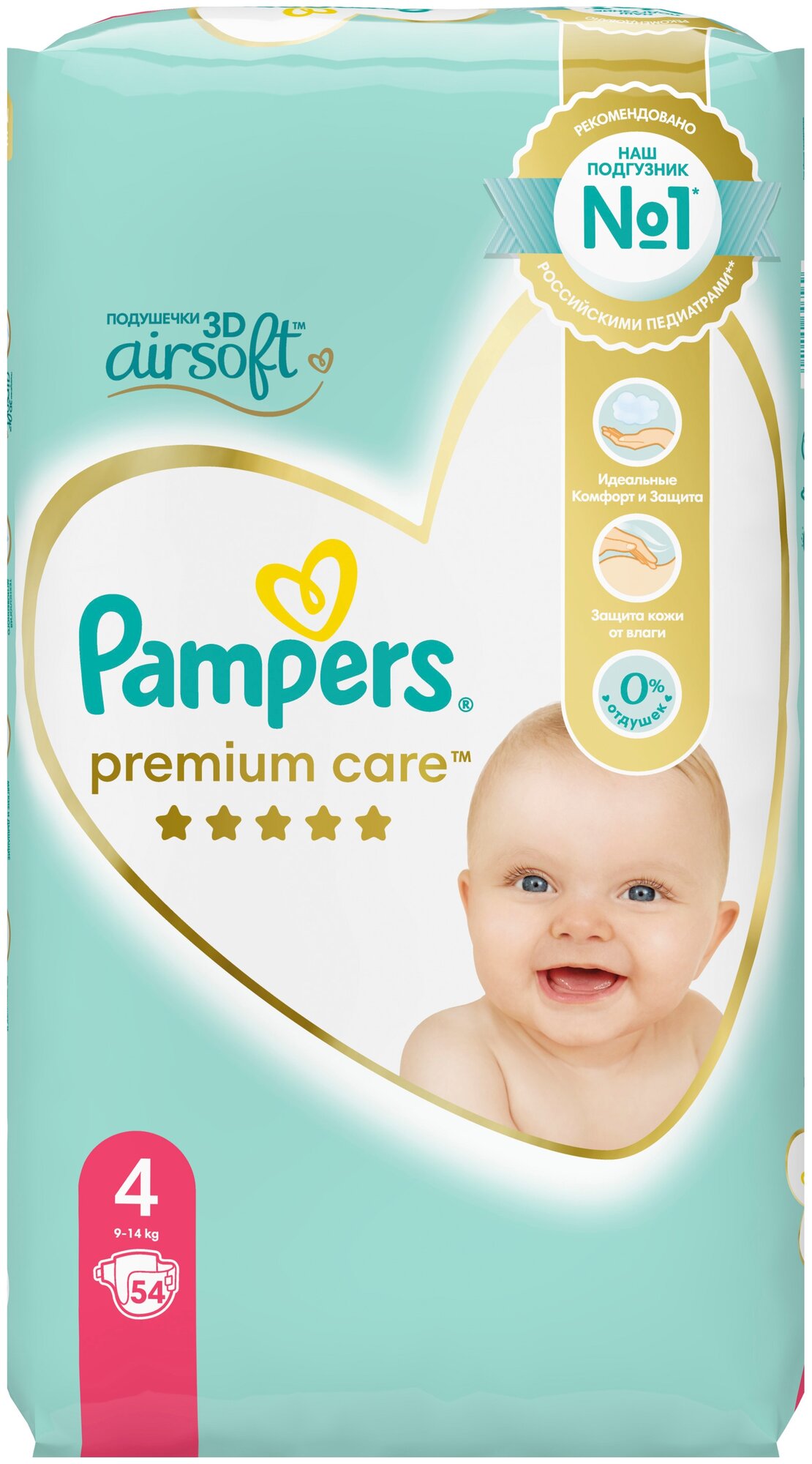 Подгузники Pampers Premium Care, размер 4, 54 шт, 9-14 кг