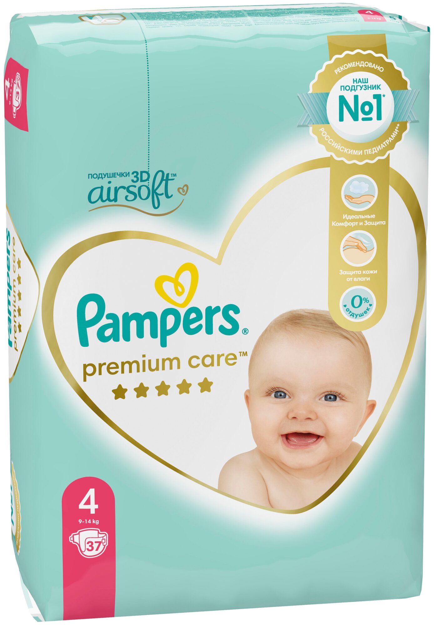Подгузники Pampers Premium Care, размер 4, 37 шт, 9-14 кг