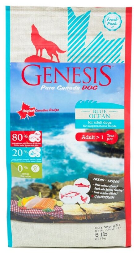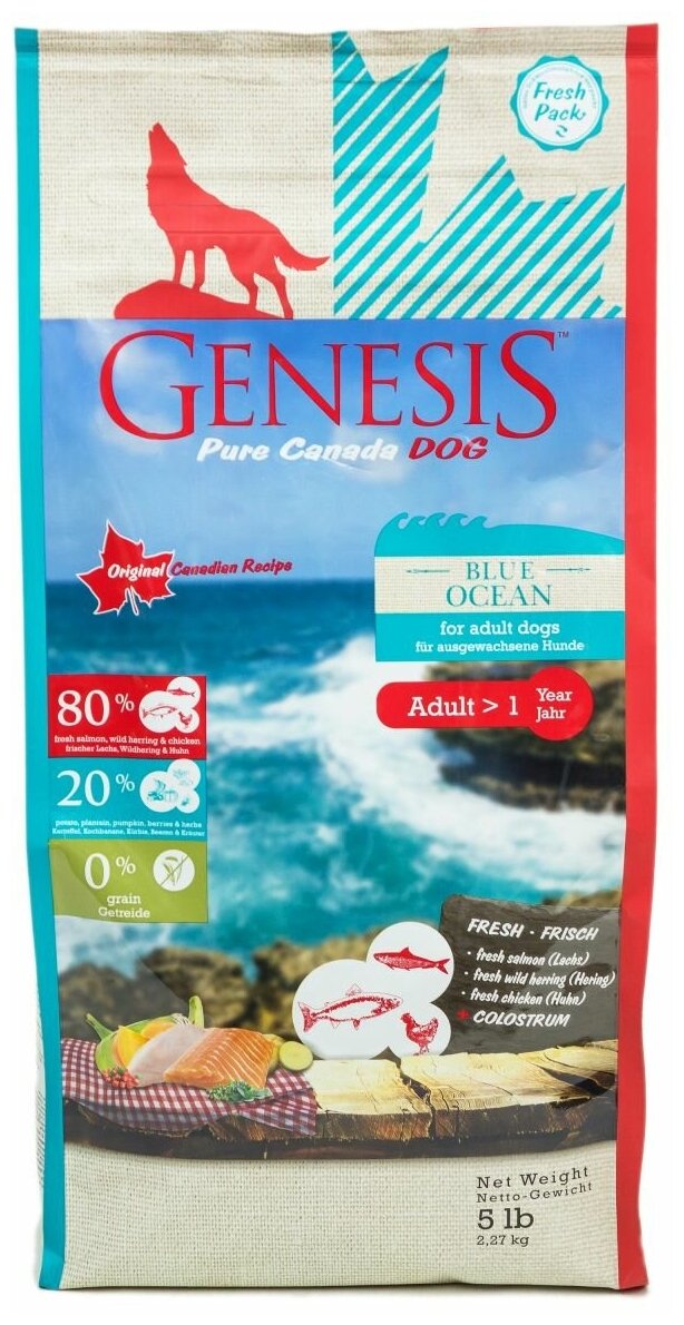 GENESIS PURE CANADA BLUE OCEAN ADULT беззерновой для взрослых собак всех пород с лососем, сельдью и курицей (11,79 кг)
