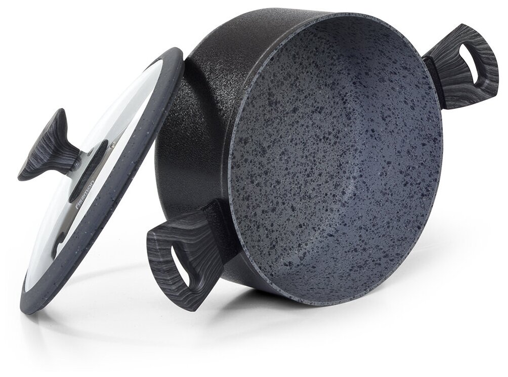 Лучшие цены. 5025 Инновационное направление в технологии производства антипригарных покрытий – использование цветов и текстур настоящего гранита, которое только на первый взгляд кажется декоративным. Серия посуды CHARM STONE с уникальным покрытием EcoStone собственной разработки FISSMAN, выполненная в благородном сером цвете с крупными белыми и черными пятнами, обладает высочайшей прочностью, термостойкостью и устойчивостью к истиранию и коррозии. Магазины в вашем городе.