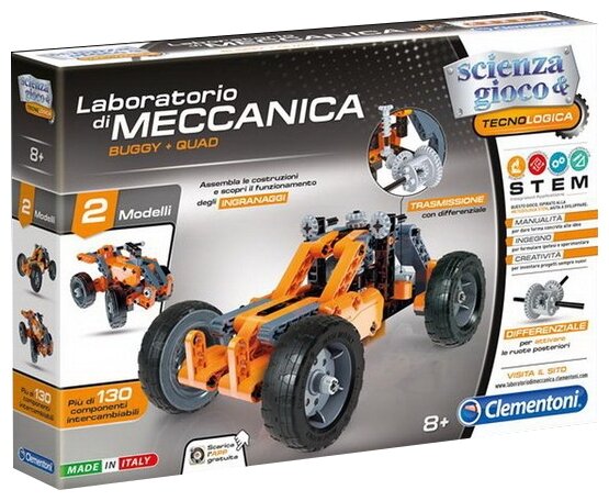 Лучшие цены. Конструктор Багги и квадр – это возможность почувствовать себя настоящим инженером. Соедините шестерни и оси, чтобы получить настоящее механическое устройство, которое передает мощность двигателя на ведущие колеса. Изучите принцип его действия! Для сборки двух мощных автомобилей вам предлагаются: - более 130 деталей оранжевого и черного цветов; - пошаговое руководство; - буклет с интересными фактами. Соберите из пластмассовых элементов итальянского конструктора кузов машины или квадроцикла. Магазины в вашем городе.