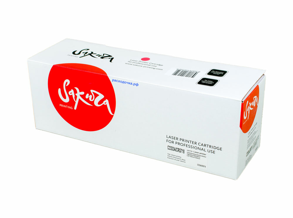 Картридж SAKURA CC533A/CRG718M для HP Color LaserJet CM2320fxiMFP, CM2320nMFP, CM2320nfMFP, CP2025, CP2025n, CP2025dn, CP2025x, Canon LBP 7200, 7200cn, iC MF8330, 8350Cdn, пурпурный, 2800 к.