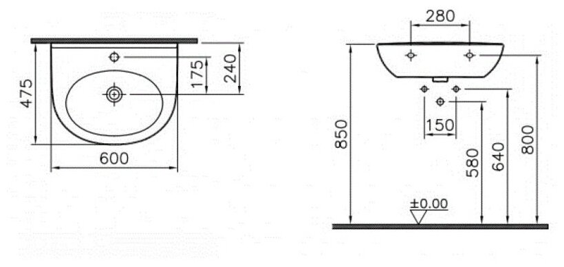 Умывальник Раковина Vitra Zentrum (600х475х175) белая 5786B003-0001