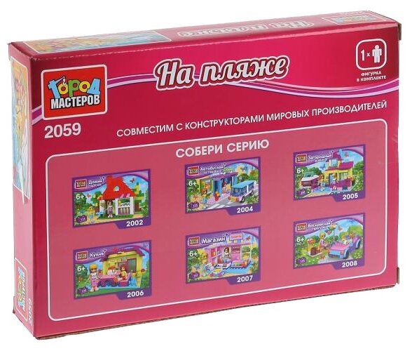 Лучшие цены. Игрушка конструктор "Город мастеров" на пляже, с фигуркой, 67 дет., цвет в ассорт. в русс. кор. в кор 36шт Конструктор для девочек "На пляже" - это новый набор ТМ "Город мастеров". В него входит 67 деталей, сделанных из прочного пластика и окрашенных в яркие цвета. Из них можно собрать лодку, девочку и другие пляжные предметы. Все детали прочно крепятся друг к другу. Собрав фигурки, ребёнок будет создавать различные игровые сюжеты. Магазины в вашем городе.