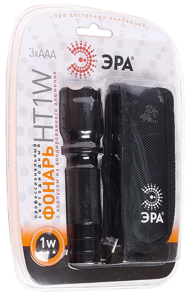 HT1W Фонарь ЭРА 1W LED, алюм, чехол, 3хААА, бл (24/96/576)