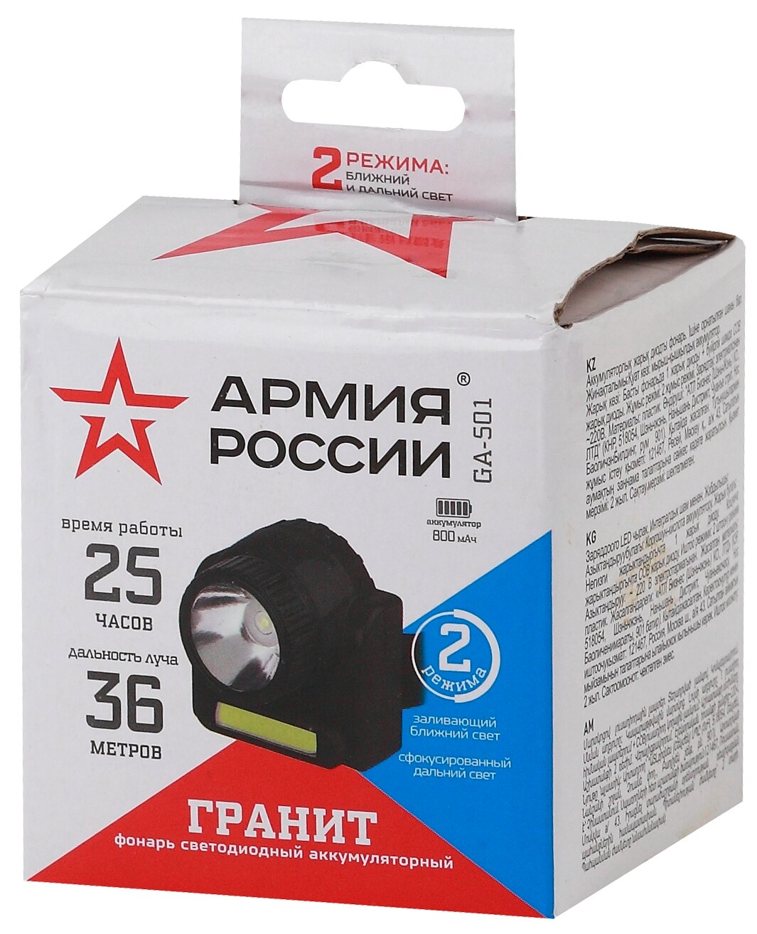 GA-501 Фонари АР армия россии налобный Гранит [3Вт COB + 3Вт LED, ближ и дальн свет, аккум, карт] (3