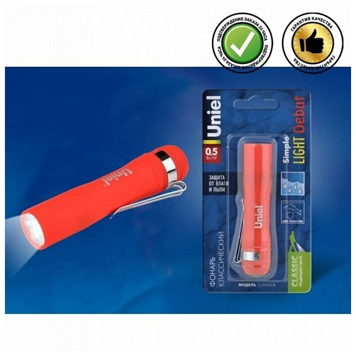 Фонарик Фонарь Uniel S-D045-B Red серия Стандарт Simple Light Debut. пласт. 0.5 Watt LED 80091