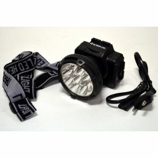 Фонарь аккумуляторный налобный LED5363 9LED 2 режима 220В пластик. черн. (бокс) Ultraflash 11257