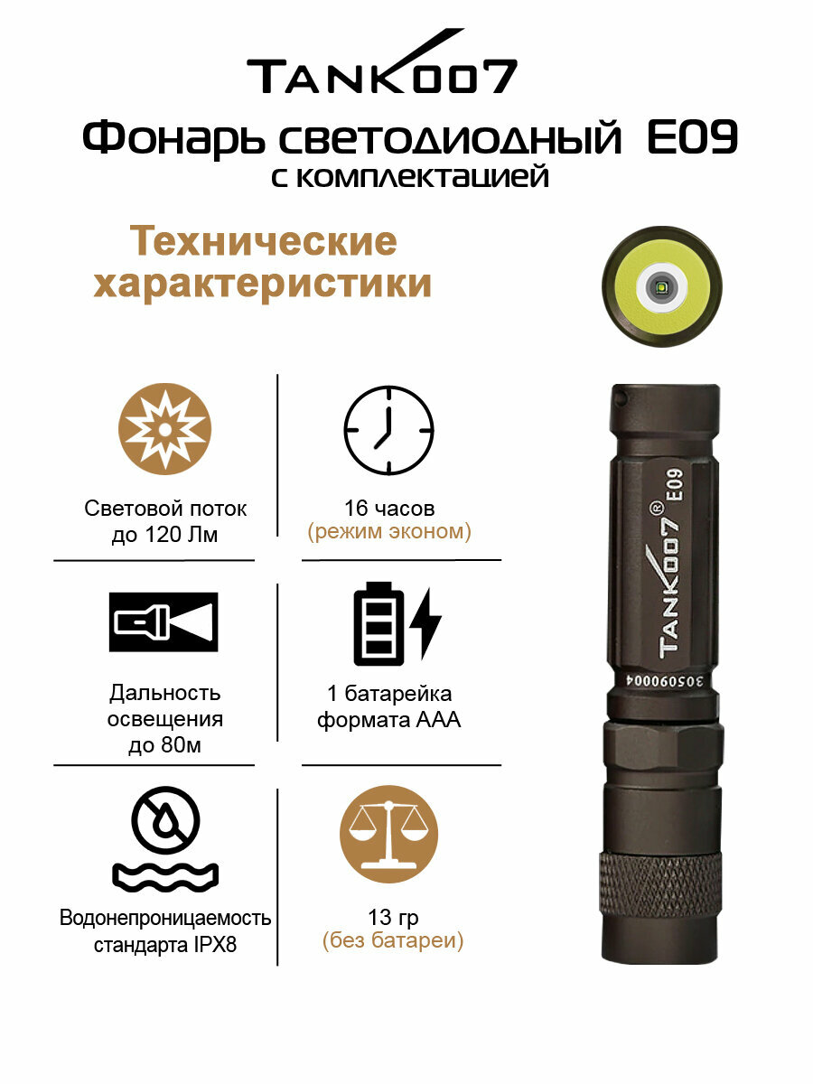 TANK007 E09 Светодиодный фонарь с комплектацией