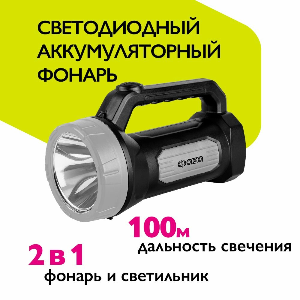 Фонарик Аккумуляторный фонарь-прожектор ручной ФАZА AccuF7-L1W/L16-bk черный