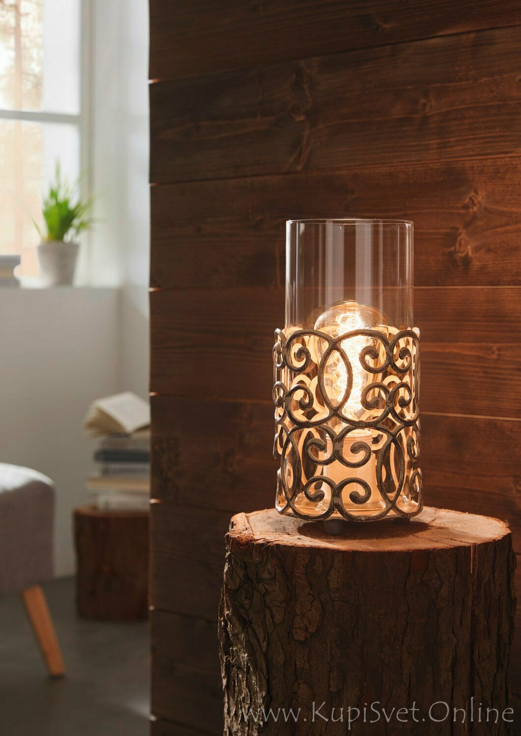 Лучшие цены. Настольная лампа CARDIGAN, 1x60W (E27), D120, H265, сталь, патина, коричневый/стекло. Магазины в вашем городе.