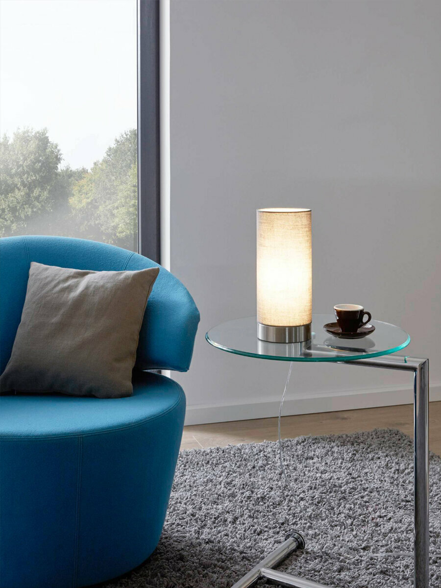 Лучшие цены. Настольная лампа PASTERI с сенсорн. димм., 1х40W (E27), ?120, H255, никель мат./текстиль, серый. Магазины в вашем городе.