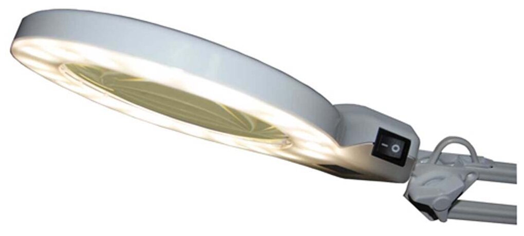 Лучшие цены. Светодиодный светильник для работы с мелкими деталями: для рукоделия, творчества, ювелирных и часовых мастерских, с увеличительной линзой. Мощность 8 Вт, диаметр линзы 127 мм, светодиодная подсветка по периметру линзы. Лупа увеличивает объект рассмотрения в 2 раза по диаметру 12 см, а встроенная в нее малая лупа увеличивает нужные области в 9 раз, если нужно приглядеться. Магазины в вашем городе.
