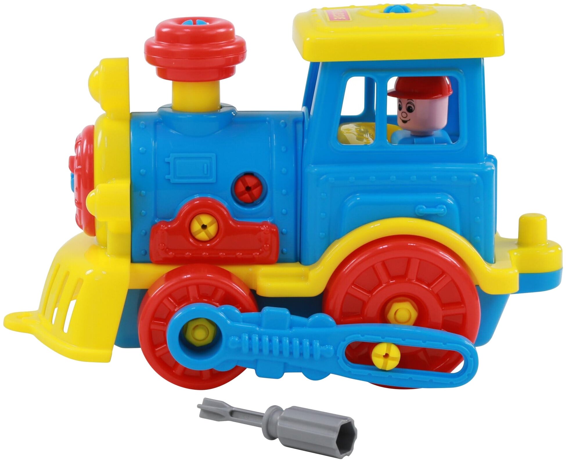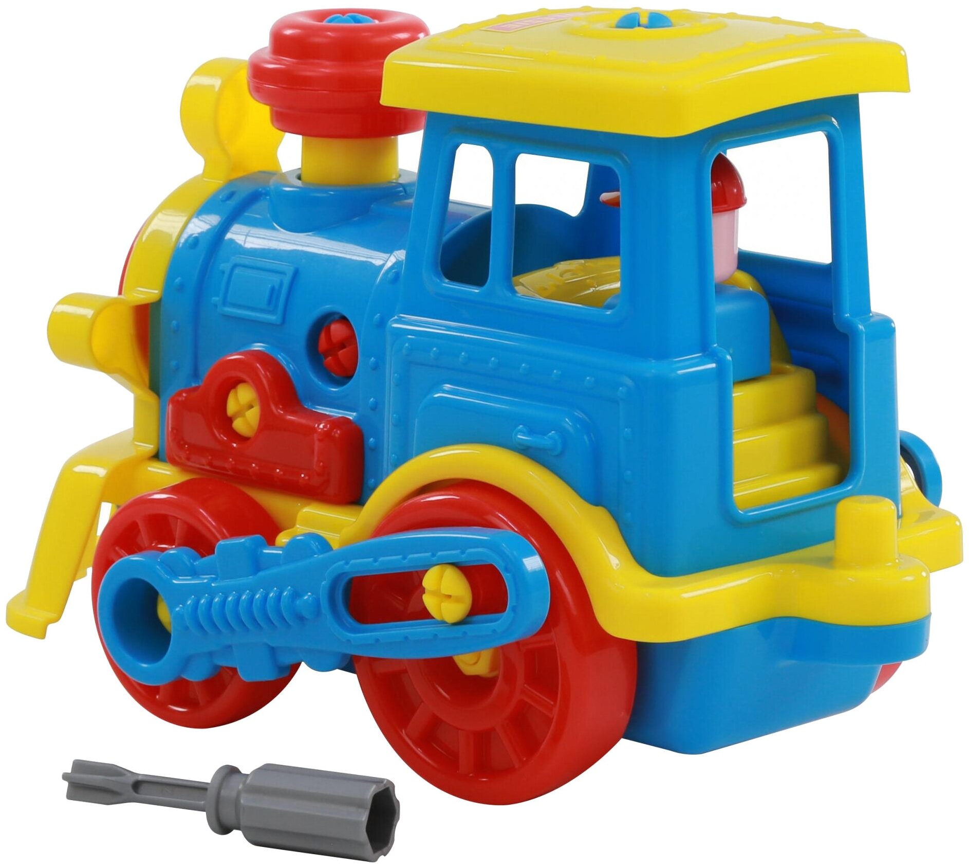 Лучшие цены. Для самых любопытных малышей, которые хотят поближе познакомиться с разными видами транспорта, фабрика "Полесье" представляет конструктор-транспорт "Паровоз". Игрушка выполнена в ярких цветах, из качественного материала, имеет округлую форму. Все элементы паровоза представлены в виде конструктора, который соединяется с помощью пластмассовых шурупов. Магазины в вашем городе.