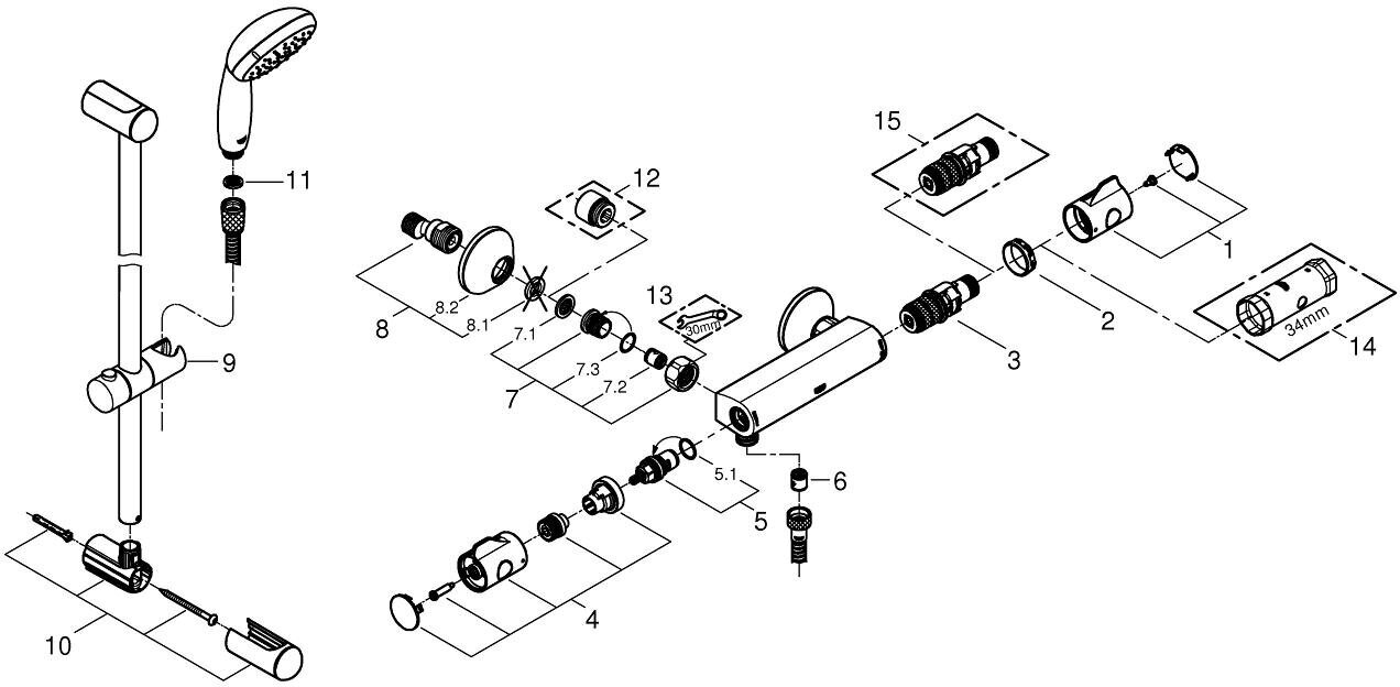 Термостатический смеситель Grohe Cмеситель для душа с термостатом Grohe Grohtherm 800 34566001