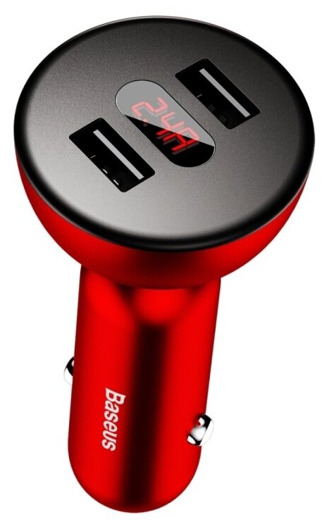Зарядное устройство Автомобильное зарядное устройство CCALL-YT09 Baseus 360°rotation Dual input Digital display Car Charger Красный