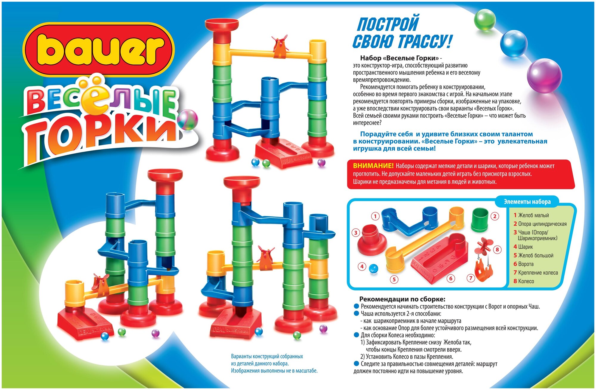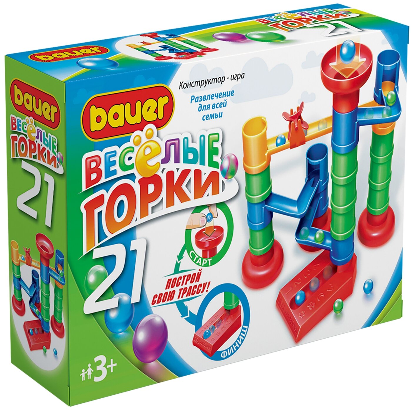 Лучшие цены. Развивающая игрушка-конструктор для детей от 3х лет, позволяющая собирать горки различных конфигураций и пускать по ним шарик. Изготовлена из безопасного пластика и пищевых красителей. Комплектация наборов: желоба для шарика, шарики, опоры для горок, приемные желоба для шариков, составные детали горок с желобами и без, вращающиеся элементы с лопастями. Магазины в вашем городе.