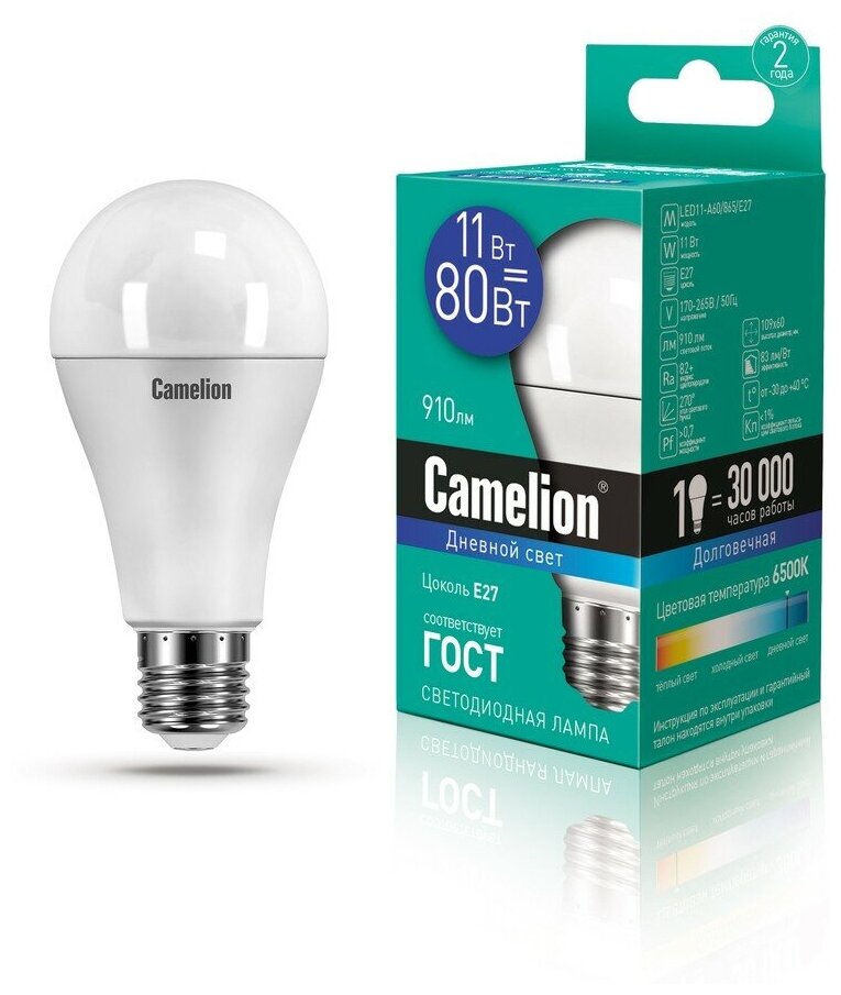 Лампочка Camelion LED11-A60/865/E27 (Эл.лампа светодиодная 11Вт 220В) (1 шт.)