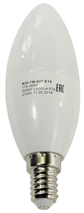 Лампа светодиодная B35-7w-827-E14 свеча 560лм, ЭРА Б0020538 (1 шт.)