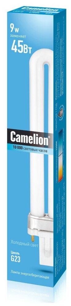 Лампочка Энергосберегающая лампа 9Вт цоколь G23 4200K(холодный цвет) размер 32х167мм - LH9-U/842/G23 (Camelion)(код заказа 2288 )