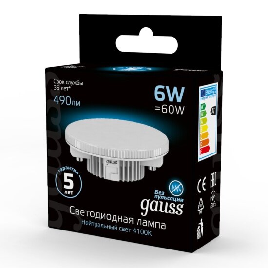 Лампа светодиодная gauss 108008206, GX53, GX53, 6 Вт, 4100 К