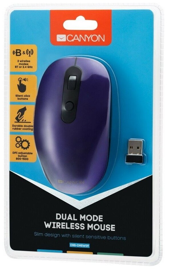 Мышь беспроводная Canyon MW-9, 1500dpi, Bluetooth/Wireless, Фиолетовый (Королевский пурпур) CNS-CMSW09V