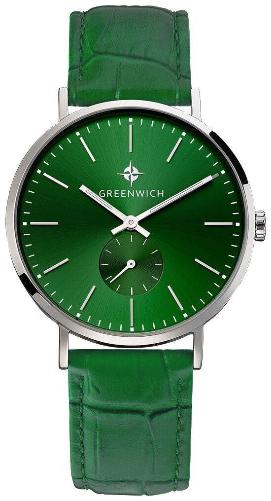 Лучшие цены. Мужска модель Greenwich GW 012.17.38 представлена из коллекции - Anchor. Бренд механизма - Miyota Корпус выполнен из нержавеющей стали. Диаметр циферблата - 40 мм. Зеленый циферблат выполнен в технике солнечных лучей с индексами. Часовая и минутная стрелка покрыта люминесцентным составом, что в темное время суток позволит увидеть время. Вынесенная секундная стрелка. Ремень выполнен из кожи зеленого цвета и оснащен пряжкой. Магазины в вашем городе.