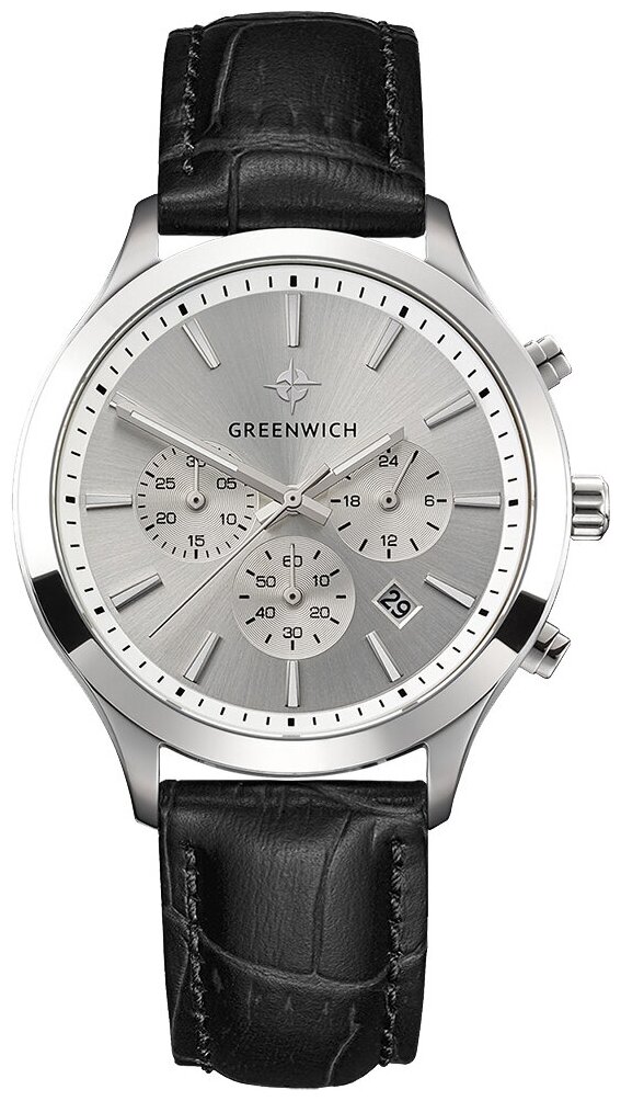 Лучшие цены. Greenwich мужские наручные часы gw 043.11.33 Мужские стильные часы на кожаном ремешке с календарем. Эти классические часы привлекают своим безупречным стилем. Модель: Greenwich GW 043.11.33 Наручные часы мужские Механизм: Кварцевый Корпуc: Стальной Циферблат: Серебристый Стекло: Минеральное Браслет: Кожаный ремешок Водозащита: 100 м Календарь: Число Дополнительные функции: Хронограф с секундомером Размер: 42 мм Механизм: Кварцевый Циферблат: Серебристый Стекло: Минеральное Браслет: Кожаный ремешок. Магазины в вашем городе.