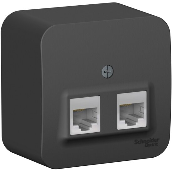 Розетка Розетка SCHNEIDER ELECTRIC BLANCA двойная компьютерная RJ45, кат.5E, изол.ПЛ., антрацит