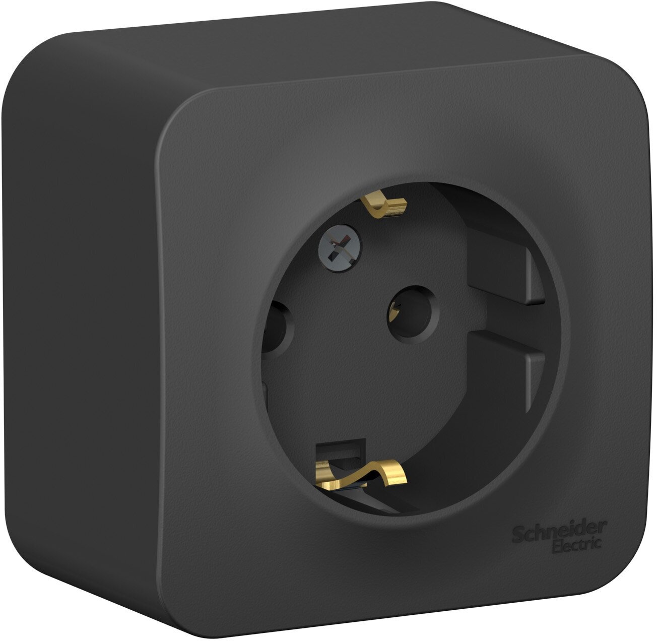 Розетка Schneider Electric Blanca с заземлением с защитными шторками антрацит для открытой проводки